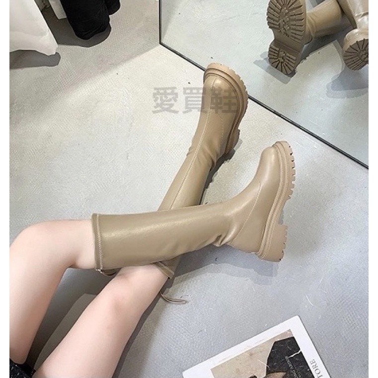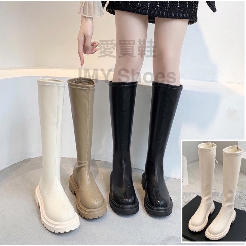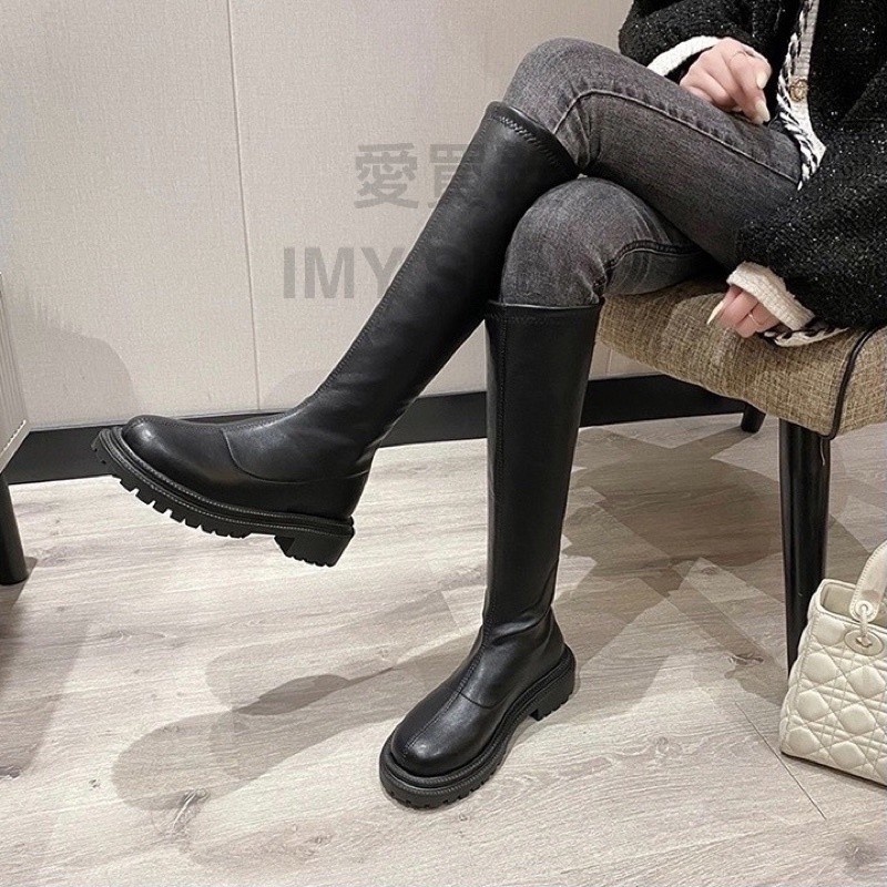 东大门火爆款?百搭素面 高筒靴【台湾现货快速出货】欧美风 高筒长靴 后拉链厚底靴 长筒靴 增高靴 军靴 骑士靴 长靴膝下