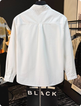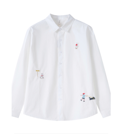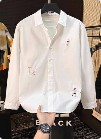 小清新休闲纯色长袖衬衫男刺绣设计感潮文艺百搭宽松翻领上衣