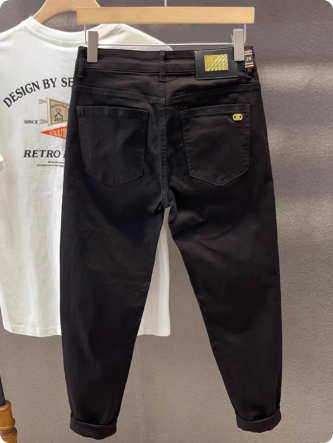 潮牌高端时尚白色九分牛仔裤男春夏潮流百搭修身小脚休闲裤子