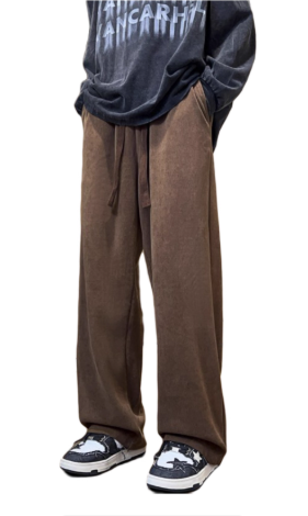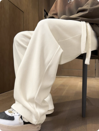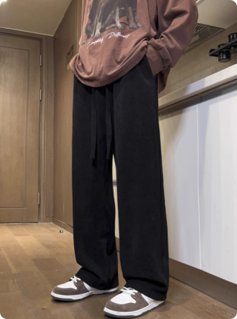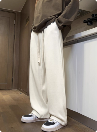 白色直筒卫裤男秋冬加绒加厚百搭宽松垂感修身大码阔腿裤