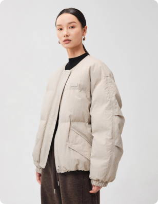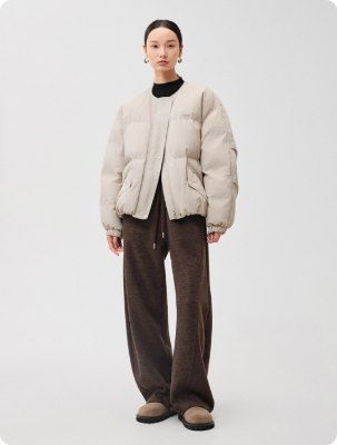 高密蓬感飞行夹克羽绒服短款圆领外套女冬季新款白鹅绒