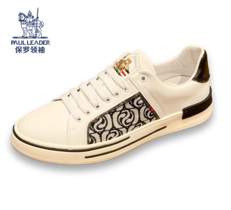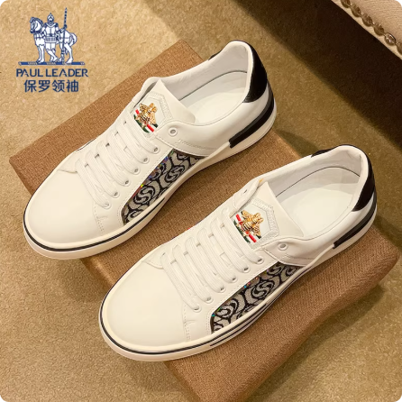 正品男鞋秋季新款印花男士休闲板鞋高级感小白色男款潮鞋
