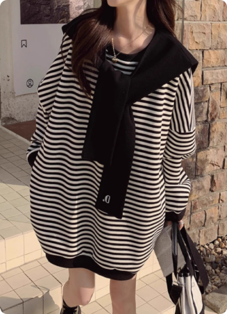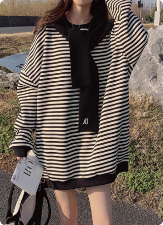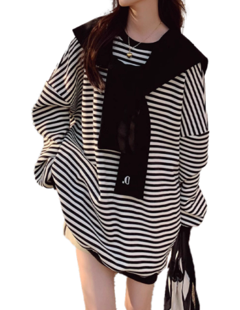 轻奢女装秋季新款时尚上衣气质百搭宽松条纹圆领卫衣