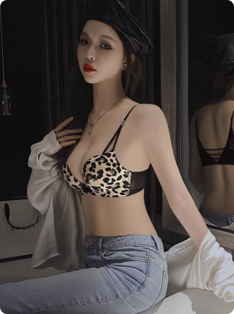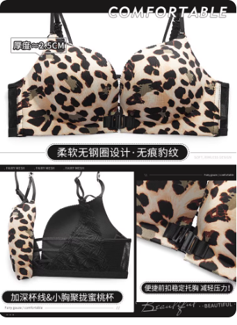 新款性感豹纹前扣美背无痕内衣女聚拢小胸显大无钢圈套装女