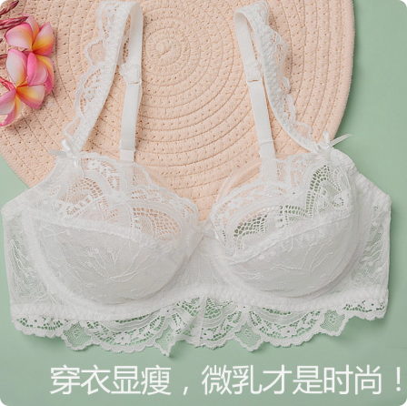 纯欲蕾丝性感内衣女薄款大胸显小收副乳防下垂文胸罩
