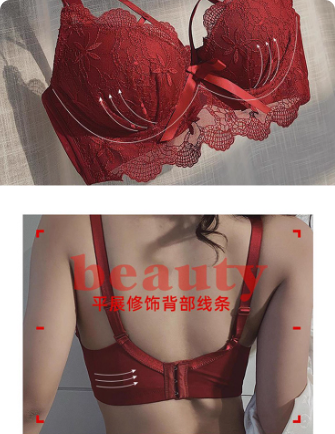 小胸聚拢内衣女本命年红色无钢圈文胸套装结婚性感蕾丝情趣