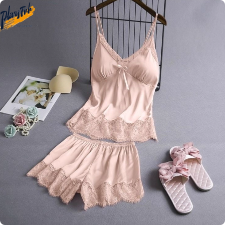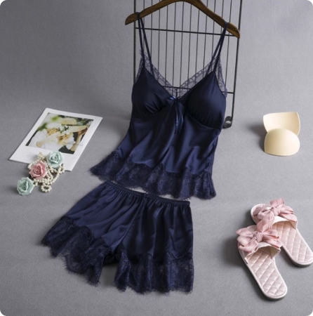宽松吊带韩版两件套睡衣女夏冰丝绸带胸垫春秋短裤套装家居服薄款