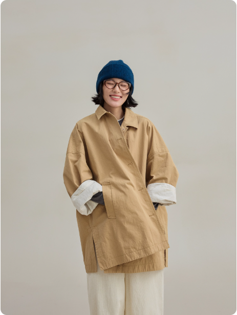 新品100%棉细斜纹休闲文艺双层廓形感风衣外套