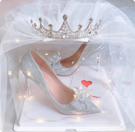 公主鞋银色尖头高跟鞋女主婚鞋新娘伴娘水晶鞋平时可穿空气棉