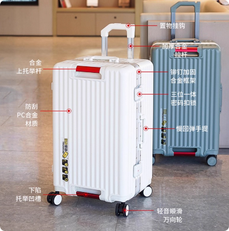 拉杆箱学生大容量铝框三七分旅行箱万向轮24登机密码箱