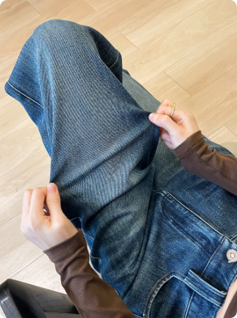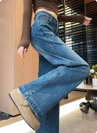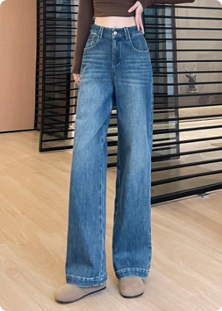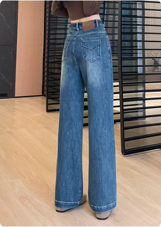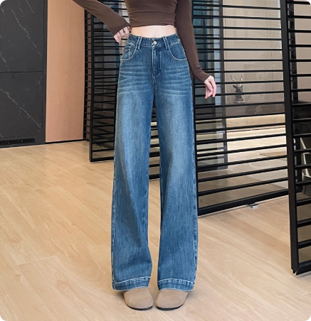 复古蓝色牛仔裤女秋季新款高腰显瘦弹力舒适窄版阔腿直筒裤子