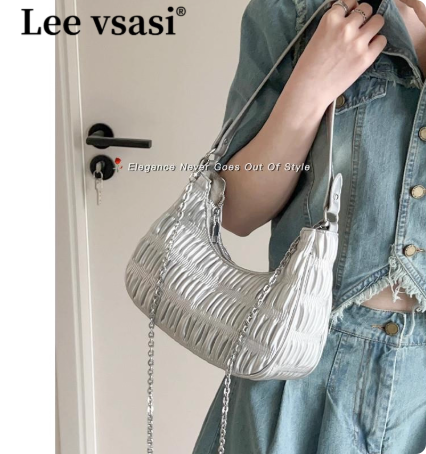 Lee vsasi小众设计褶皱包包女2025春夏新款潮单肩斜挎包百搭ins