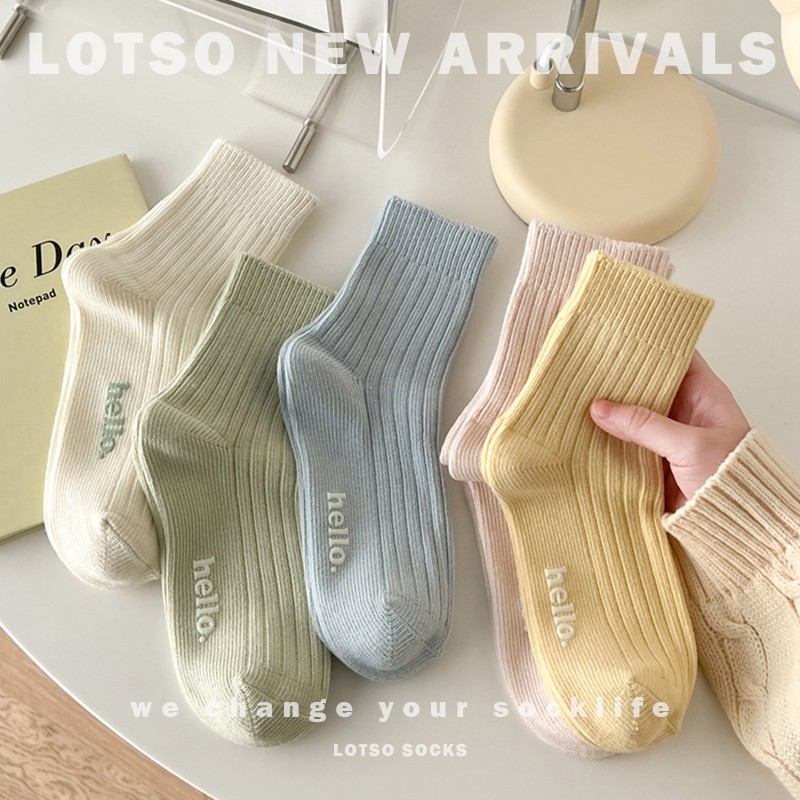 LOTSO SOCKS 日系小清新奶油中筒袜 字母烫印 春夏新款 女袜 袜子 穿搭 #LM037