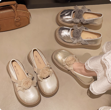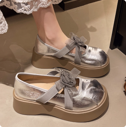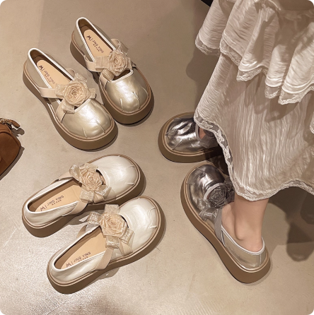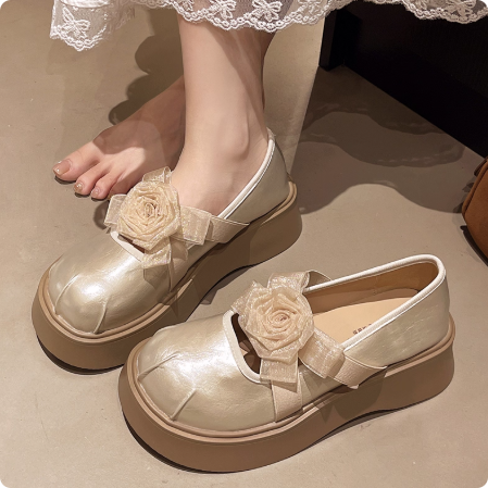 Next kiss2025夏季新款绝美松糕厚底玛丽珍单鞋女花朵乐福小皮鞋