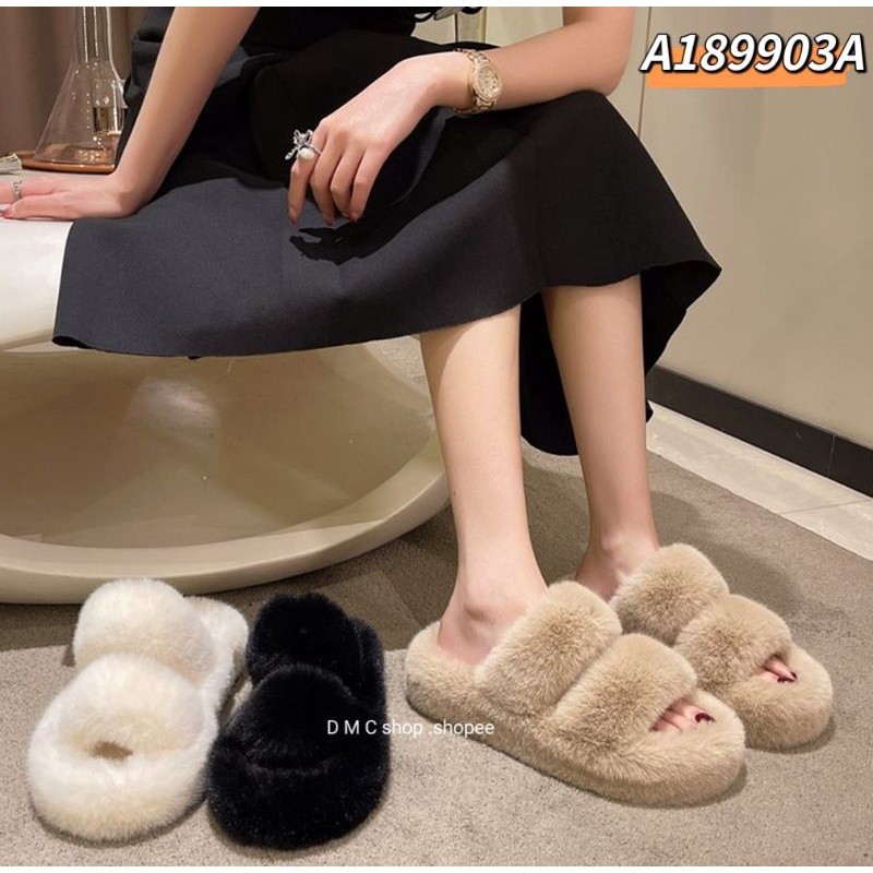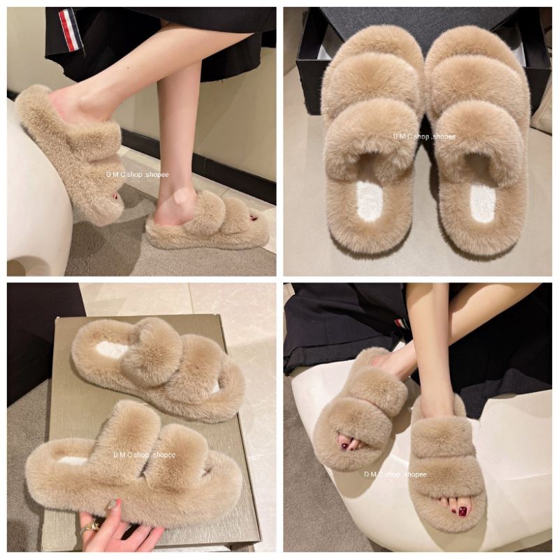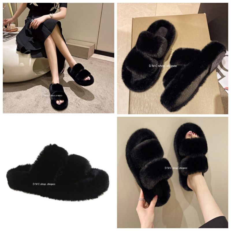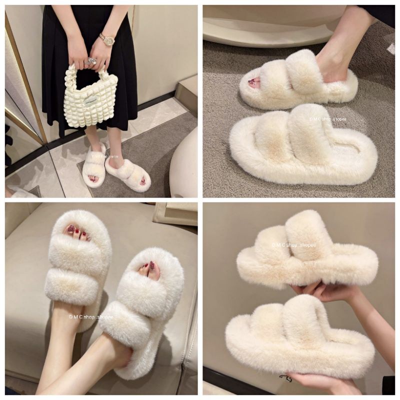 【ruru shop】韩版一字双带厚底拖鞋 毛毛拖 休闲外穿拖鞋 室内拖鞋 居家拖鞋 露趾大尺码 平底拖鞋?#9903A